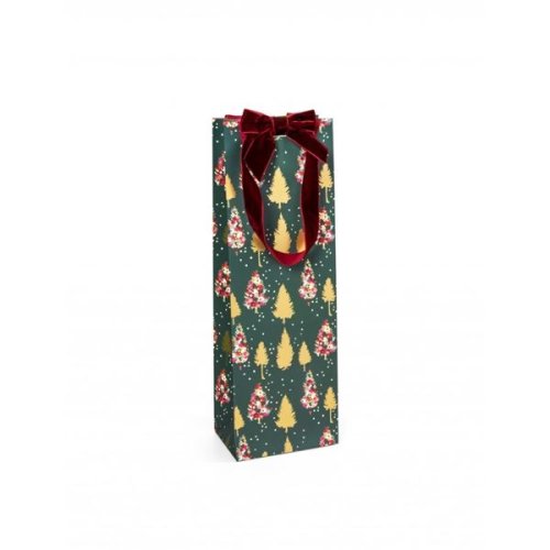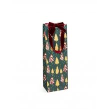 Dárková taška na víno s motivem vánočních stromků s velurovou mašlí, rychlý pomocník při balení vašich dárků