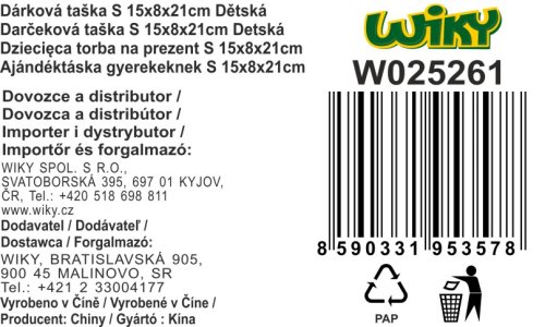Dárková taška S o velikosti 15x8x21 cm Dětská