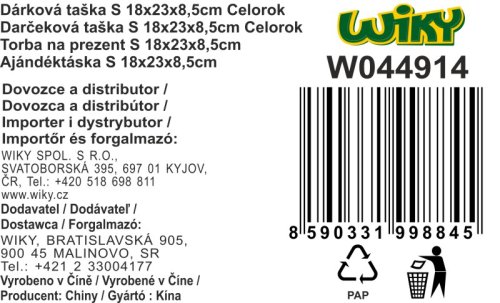 Dárková taška o velikosti S 18x23x8,5 cm Celorok.