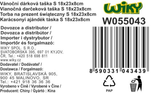 Dárková taška o velikosti S 18x23x8 cm VÁNOCE. 4 varianty: stříbrná, červená, modrá, zelená.