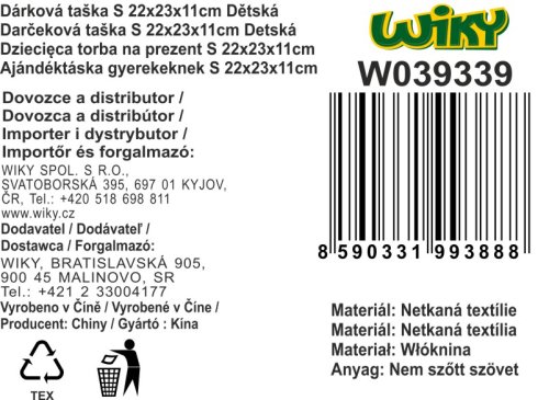 Dárková taška S 22x23x11 cm Dětská - netkaná textílie