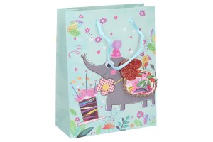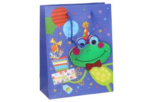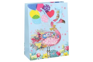 Dárková taška o velikosti S 23x18x8 cm Dětská. 4 zvířátka: plaměňák, tygr, slon, žaba.