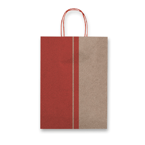 Dárková papírová taška Sadoch Kraft Red Stripe v atraktivním designu s červenohnědým provedením. Hnědý kraftový papír z vnější části a z vnitřní části bílý kraftový papír.