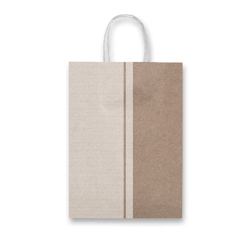Dárková papírová taška Sadoch Kraft White Stripe v atraktivním designu s bílohnědým provedením. Hnědý kraftový papír z vnější části a z vnitřní části bílý kraftový papír.