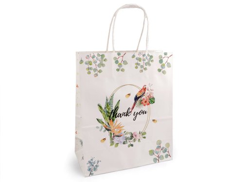 Dárková taška Thank you - krémová nejsvět. papoušek (12 ks)