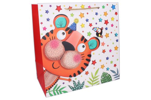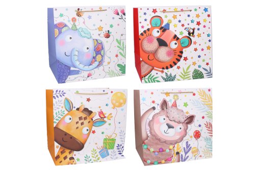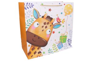 Dárková taška XXL o velikosti 51x72x18 cm Dětská. 4 varianty zvířátek: slon, tygr, ovečka a žirafa.