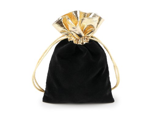 Sametový pytlíček s lesklým metalickým okrajem je vhodný na zabalení menších dárků. Jeho luxusní vzhled je dokonalým doplňkem pro jakoukoli příležitost, ať už jde o narozeniny nebo jinou slavnostní událost. Dámy mohou nosit sametové pytlíčky v kabelce a schovávat v nich vše, co má být skryto. Pytlík se snadno uzavírá pomocí dvou stahovacích saténových šňůrek.