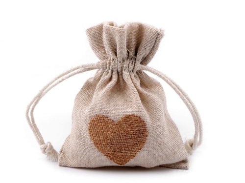 Malý bavlněný pytlík zdobí z jedné strany srdce z imitace juty. Pytlík jednoduše uzavřete pomocí dvou stahovacích šňůrek. Použití: Pytlík využijete k balení dárků nebo uskladnění sušených vonných květů.
