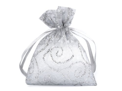 Dárkový pytlíček je vyrobený z organzy a zdobí ho ornamenty z glitrů. Snadno se uzavírá pomocí dvou stahovacích šňůrek. Do pytlíku skryjete drobné dárky nejen na narozeniny, ale také na Vánoce.