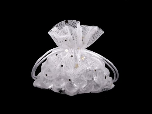 Dárkový pytlíček je vyrobený z tylu. Zdobí jej lesklý metalický potisk hvězdiček. Snadno se uzavírá pomocí dvou stahovacích saténových šňůrek. Do pytlíku skryjete drobné dárky nejen na narozeniny, ale také na Vánoce.