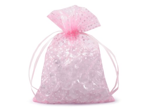 Dárkový pytlík puntíky 13x18 cm organza - růžová sv. (100 ks)