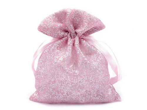 Dárkový organzový pytlíček je celý posetý glitry, díky kterým se poutavě třpytí. Působí luxusním dojmem. Hodí se k zabalení menšího dárku, který povýší na vyšší úroveň. Pytlík se snadno uzavírá pomocí dvou stahovacích saténových šňůrek. Glitry jsou pevné, z pytlíku se neodírají.