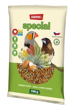 Proso žluté, proso červené, lesknice kanárská, mohár červený, oves nahý, Yucca schidigera, kvasnice, vejce.