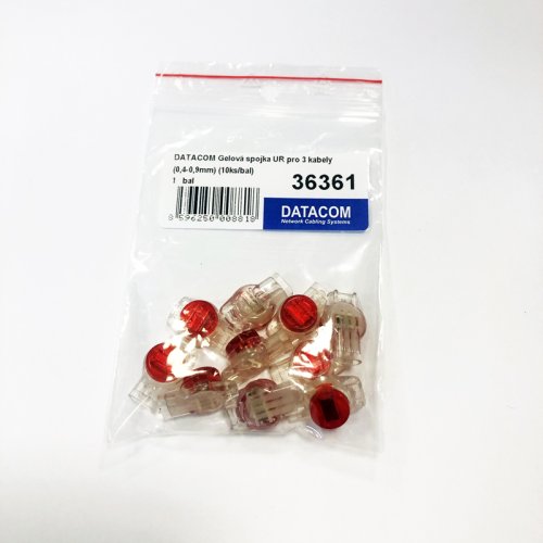 Gelová spojka UR pro 3 kabely (Jelly Connector) 10ks v balení - umožňuje spojení až tří kabelů s ochranou spoje v gelovém pouzdře - cena je za 1bal (10ks) - pro průměr vodiče: (bez izolace) 0,4-0,9 mm(s izolací) max. 1,67 mm Rozměry gelové spojky: 19 x 11,5 x 6 mm