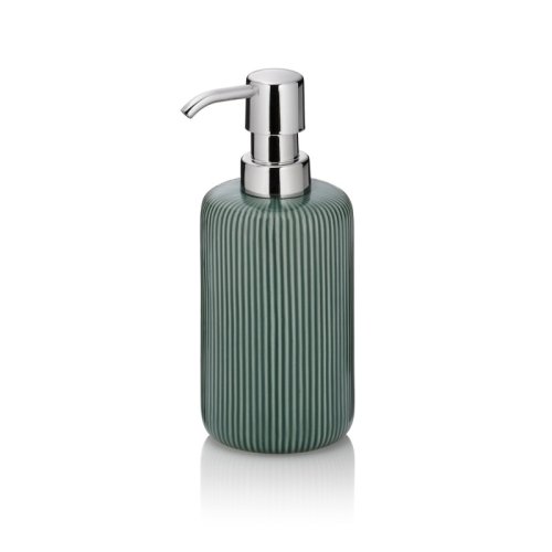 Barva pro vaši koupelnu: velký, krásný keramický dávkovač mýdla Ava o objemu 350 ml. Dávkovač mýdla zaujme svou alpskou zelenou barvou. Výměnná hlava čerpadla je vyrobena z plastu, pochromovaná. Výška: 17,5 cm Keramický 7,5 cm, v. 17,5 cm