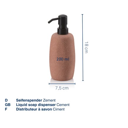Dávkovač mýdla Roda cement terra 7,5x7,5x18,0cm 200,0ml KL-23752