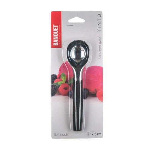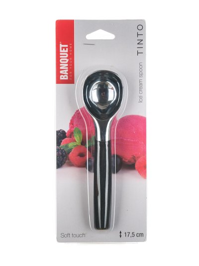 Naběračka na zmrzlinu TINTO. Naběračka je vyrobený ze slitiny zinku s pochromovaným povrchem. Rukojeť je ze speciálního plastu, který má protiskluzovou úpravu. Výrobek není vhodný do myčky nádobí.