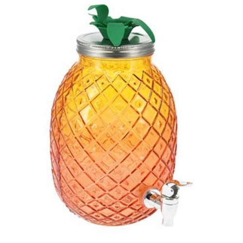 Barevné provedení (žlutá/oranžová) rozzáří každý interiér i venkovní posezení, zatímco stříbrný kohout z PP plastu umožňuje pohodlné nalévání bez rozlití. Kovové víčko zajišťuje uzavření a chrání obsah před vnějšími vlivy, zatímco zelený silikonový list nebo korunka na víčku přidává dávkovači hravý dotek přírody.