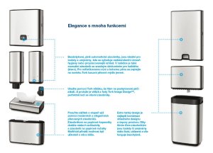 Vytvořit sofistikovaný dojem na toaletách a umývárnách je stejně důležité, jako je pro vaše podnikání stěžejní prostor recepce či vaše nabídka a služby. Vytvořte skvělý dojem, který podpoří image vysoké kvality vašeho podniku s dávkovačem Tork Image Line Sensor! Nabízí skvělé ekonomické řešení díky přesnému dávkování, které sníží spotřebu až o několik desítek %. Své využití nalezne převážně v pohostinství, zdravotnictví, strojírenství, v oboru financí i v dalších oblastech, kde jsou kladené vysoké nároky na hygienu.
