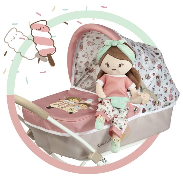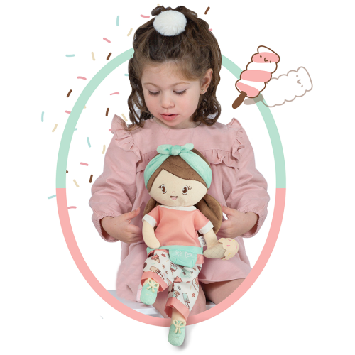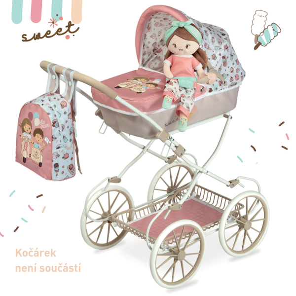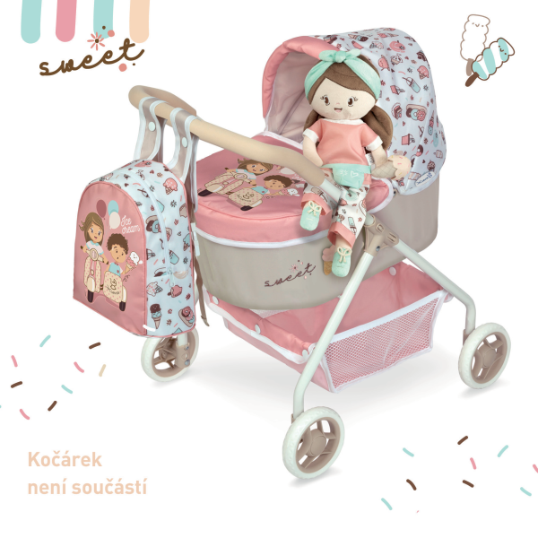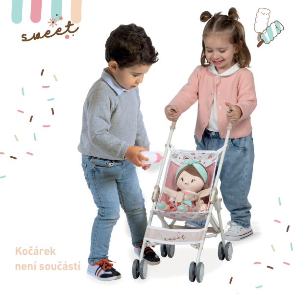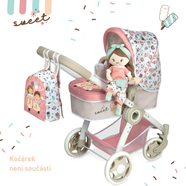 DeCuevas 20148 Plyšová panenka SWEET - 36 cmPlyšová panenka SWEET je malá slečna se zmrzlinkou v ruce, patřící do stejnojmenné kolekce, která je novinkou roku 2022 a nabízí kromě různých druhů kočárků i další doplňky pro budoucí hospodyňky. Charakteristická je pro ní sladěná kombinace barev lososové s béžovou a bílé s jemnými motivy drobných dortíků, zmrzlinek a muffinů, které působí roztomile a hravě. Panenka je vyrobena z vysoce kvalitního hladkého lesklého plyše a je pratelná (ručně na 30 °C). Díky své velikosti a lehoučké váze je ideální společnicí každé malé holčičky nejenom na cestách, ale díky měkkému materiálu je příjemná i na mazlení do postýlky. Panenka je balena v igelitovém obalu. Velikost 36 cm. Doporučený věk 12m +.Doplňující informace:• Nádherný španělský design• Materiál: plyš, polyester, duté vlákno• Pratelná ručně na 30 °C• Rozměry samotné panenky: 15 x 8 x 36 cm (š x d x v)• Baleno v ochranném igelitovém obalu • Rozměry balení 15 x 8 x 36 cm (š x d x v)• Váha balení: 0,12 kg• Doporučený věk od 12 měsíců