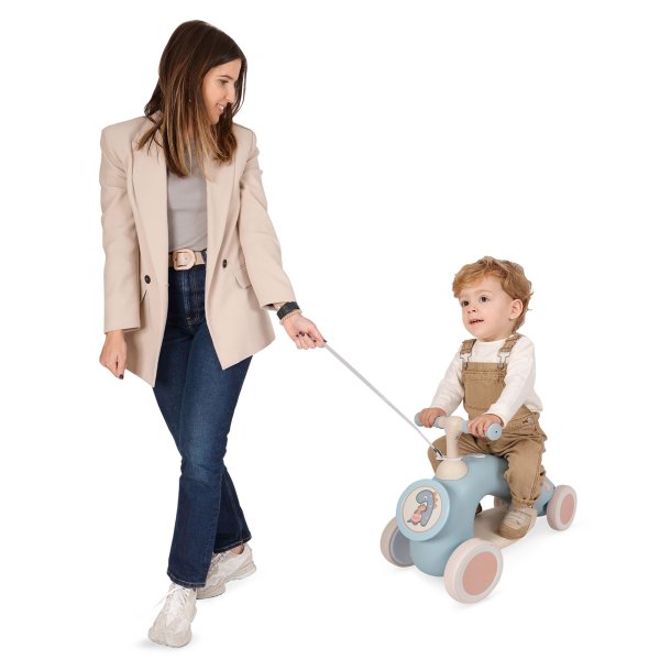 DeCuevas 30080 Moje první odrážedlo COCO 2024, ze stejnojmenné kolekce, která je novinkou roku 2024, je ideálním dopravním prostředkem pro nejmenší děti. Pokud již vaše dítě zvládá první kroky a je připraveno začít se učit jezdit, bude toto odstrkovadlo pro něj perfektní hračkou a pomocníkem. Děti si během hry mohou vyzkoušet nasedání, sesedání, odrážení a řízení a budou tak moci rozvíjet své další schopnosti. Velkou výhodou tohoto odrážedla je podnožka a tažný popruh, který umožní jízdu i těm nejmenším, anebo uleví bolavým malým nožkám. V hravé kolekci COCO je dominantní obrázek dinosauří maminky se svým roztomilým mláďátkem, které nese na zadečku ještě vaječnou skořápku. Potisk malého dinosauříka na jemně holubičí šedomodré látce je základem celé kolekce, již zdobí prvky v pískové nebo narůžovělé barvě, která se promítá i do většiny nosných konstrukcí. Nádherný španělský design, precizní zpracování. Velmi snadná manipulace během samotné hry. Materiál: plast, guma. Baleno v krabici v barvách kolekce. Doporučený věk od 3 let.