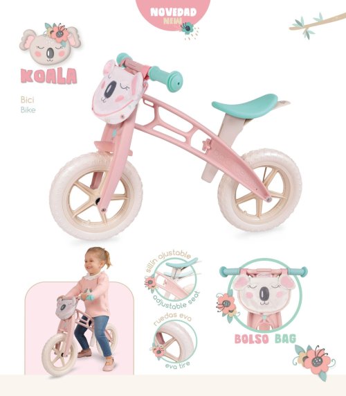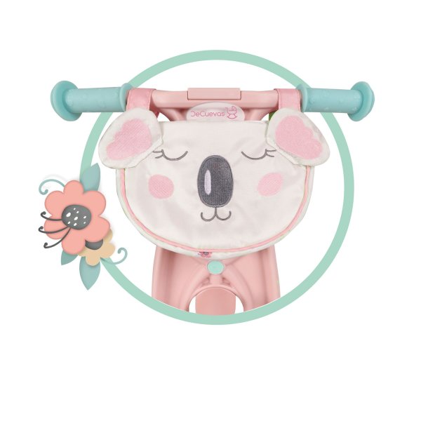 DeCuevas 30179 Dětské odrážedlo - Balance Bike KOALA 2024 patří do stejnojmenné kolekce, která je novinkou roku 2024 a nabízí nejen kočárky, ale i jiné doplňky pro malé slečny a jejich panenky. Tato dívčí kolekce KOALA je doslova něžnost sama. Spící medvídek s květinou za ouškem je velmi roztomilý. Tento motiv doprovází každý výrobek z kolekce. V provedení se střídá bílá s drobným květinovým potiskem s lososově růžovým jednobarevným materiálem.