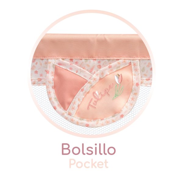 DeCuevas 40074 Nábytkový set pro panenky 2 v 1 Tulipe 2025 patří do stejnojmenné kolekce, která je novinkou roku 2025 a nabízí výběr výrobků od jídelních sad přes postýlky a kočárky až po dřevěný nábytek pro panenky. Tulipe je, jak již sám název napovídá, kolekce plná tulipánů v překrásně sladěných teplých pastelových lososových barvách. Světlejší a tmavší odstíny barev jsou vkusně doplněné drobným květinovým vzorem ve stejných tónech na bílosmetanovém podkladu. Tento motiv ještě navíc u kočárků umocňují svým tematickým tvarem i překrásné, jako tulipán vypadající tašky. Květ tulipánu zdobí i dřevěné výrobky této kolekce.