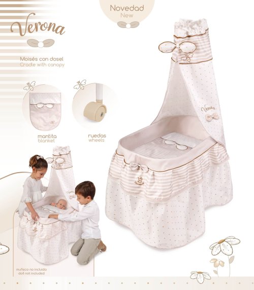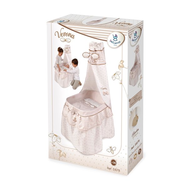 DeCuevas 51078 Pojízdná postýlka pro panenky s nebesy a peřinkou Verona 2024 patří do stejnojmenné kolekce, která je novinkou roku 2024 a nabízí nejen zmíněné kočárky, ale i jiné doplňky pro malé slečny a jejich panenky. Tato decentní kolekce je celá nesena v jemných pastelových přírodních barvách i vzorech. Kombinace světle béžové a bílé s roztomilými puntíky nebo proužky doplňuje světle hnědé úzké lemování, které zdůrazňuje dokonalost tvarů a krásně ladí s hnědými madly kočárků. Přírodní styl kolekce podtrhují aplikace mašliček zobrazující okvětní lístky a drobné výšivky včeliček. Doplňky a vybavení:• Nebesa s mašličkami zobrazující okvětní lístky a výšivkami včeliček• Peřinka s ozdobnou mašličkou zobrazující okvětní lístky a výšivkou včeličky • 4 otočná kolečka, umožňují pohyb jakýmkoliv směrem• Rozměry postýlky: 60 × 37 x 100 cm (d x š x v)• Rozměry lůžka: 59 x 36 x 20 cm (d x š x v)• Panenka není součástí baleníDoplňující informace:• Nádherný španělský design• Precizní zpracování• Velmi snadná manipulace během samotné hry• Materiál: kov, plast, textil• Baleno v krabici v barvách kolekce• Rozměry balení: 62,5 x 11,7 x 41 cm (d x š x v)• Váha balení: 2,58 kg• U vybraných modelů je na obalech QR kód s video návodem na sestavení • Doporučený věk od 3 letDeCuevas 51078 Pojízdná postýlka pro panenky s nebesy a peřinkou Verona 2024, ze stejnojmenné kolekce, která je novinkou roku 2024, potěší každou malou holčičku. Díky otáčivým kolečkám nemusí zůstat stát pouze v pokojíčku, al