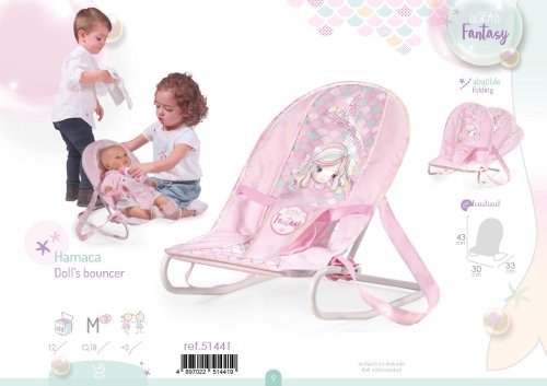 DeCuevas 51441 Polohovací lehátko pro panenky Ocean Fantasy 2021 je z překrásné světle růžové kolekce s malou mořskou vílou. Letošní kolekci zdobí třpytivé, částečně měnící se flitry na ocásku víly, které připomínají rybí šupinky. Mořské hvězdice, roztomilé polštářky ve tvaru ocasní ploutvičky a hladké lesklé lemování, které vytváří duhové efekty, doplňují tuto mořskou pohádkovou tématiku. V kolekci Ocean Fantasy 2021 najdeme největší výběr výrobků od cestovních a jídelních sad přes postýlky a kočárky, až k dřevěnému nábytku, nejenom pro panenky.Doplňky a vybavení:• Polohovací opěrka na sezení a ležení • Dva postranní látkové úchyty na přenášení či houpání• Bezpečností pás mezi nožičkami• Rozměr lehátka v sedící poloze: 33 x 30 x 43 cm (d x š x v)• Panenka a lahvička nejsou součástí baleníDoplňující informace:• Nádherný španělský design• Precizní zpracování• Materiál: plast, textil• Baleno v krabici v barvách kolekce • Rozměry balení: 46,2 x 11,5 x 31,2 cm (d x š x v)• Váha balení: 0,9 kg• Doporučený věk od 3 letDeCuevas 51441 Polohovací lehátko pro panenky Ocean Fantasy 2021, z překrásné světle růžové kolekce s malou mořskou vílou, potěší jistě každou malou slečnu, která ráda cestuje se svou panenkou v autě. Lehátko je vhodné pro panenky do velikosti max 48 cm.Nádherný španělský design, precizní zpracování. Materiál: plast, textil. Baleno v krabici v barvách kolekce. Doporučený věk od 3 let.