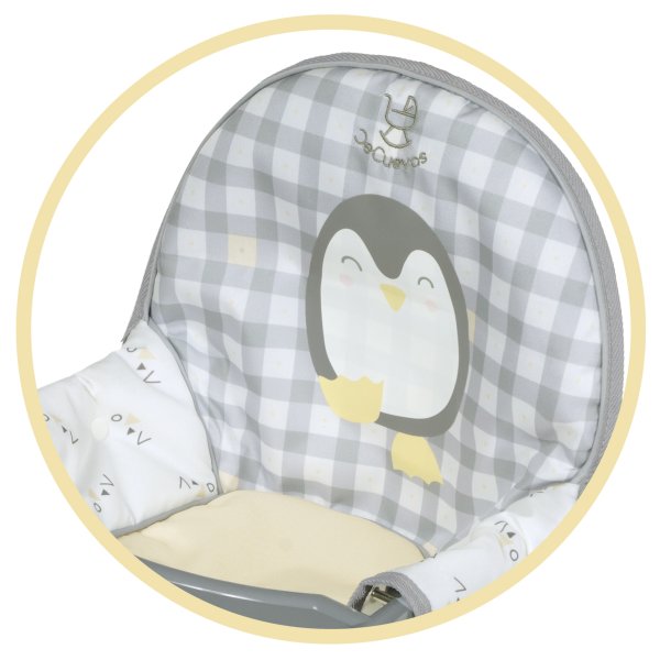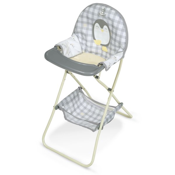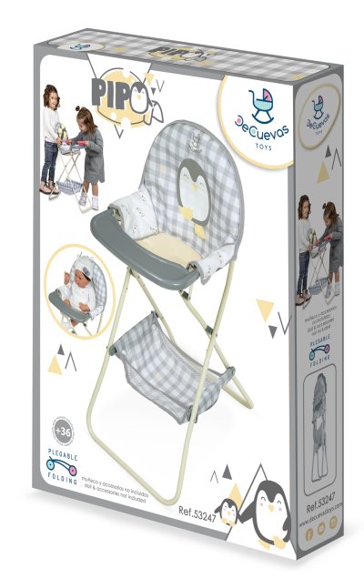 DeCuevas 53247 Skládací jídelní židlička pro panenky PIPO 2022 patří do stejnojmenné kolekce, která je novinkou roku 2022 a nabízí krom různých druhů kočárků a nábytku pro panenky i další doplňky pro budoucí hospodyňky. Charakteristická je pro tuto kolekci šedobílá kostka v kombinaci s jednobarevnými šedivými a bílými drobně vzorovanými částmi a doplňky v jemně žluté barvě a již zmíněným tučňákem PIPO.
