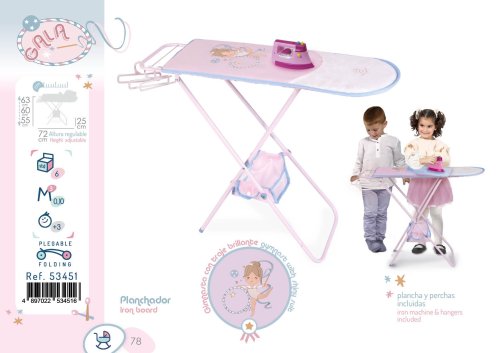 DeCuevas 53451 Skládací žehlicí prkno pro panenky s doplňky GALA 2023 patří do stejnojmenné růžovobílé kolekce s malou gymnastkou, zachycenou v baletně sportovní kreaci, která je novinkou roku 2023. Celou růžovobílou kolekci s drobným potiskem sportovních prvků doplňuje modrá barva a danou tematiku navíc podtrhují sportovně laděné tašky na kočárkách. Kolekce nabízí nejen zmíněné kočárky, ale i jiné doplňky pro malé slečny a jejich panenky.Doplňky a vybavení:• Dětská plastová žehlička• 3 plastová ramínka na oblečení pro panenky• Praktický úložný látkový košíček na oblečení, upevněný na konstrukci žehlicího prkna• Nastavitelná výška: 55, 60 a 63 cm• Rozměry prkna: 75 x 25 cm (d x š) x výška 55, 60 nebo 63 cm• Oblečky nejsou součástíDoplňující informace:• Nádherný španělský design• Precizní zpracování• Skládací model• Velmi snadná manipulace během samotné hry• Materiál: kov, plast, textil• Baleno v krabici v barvách kolekce• Rozměry balení: 83 x 7,5 x 26,2 cm (d x š x v)• Váha balení: 2,45 kg• U vybraných modelů je na obalech QR kód s video návodem na sestavení • Doporučený věk od 3 letDeCuevas 53451 Skládací žehlicí prkno pro panenky s doplňky GALA 2023, ze stejnojmenné kolekce, která je novinkou roku 2023, je nezbytnou součástí výbavy každé malé hospodyňky. Díky nastavitelné výšce do 3 úrovní, roste s malými slečnami i několik let. Kolekce nabízí nejen zmíněné kočárky, ale i jiné doplňky pro malé slečny a jejich panenky. Charakteristická pro tuto kolekci je malá gymnastka, zac