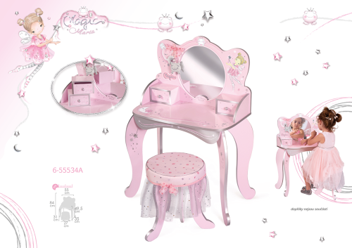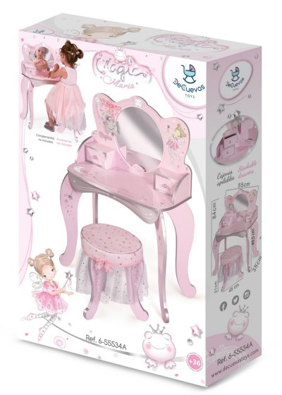 DeCuevas 55534A Dřevěný toaletní stolek se zrcadlem a dřevěnou židličkou Magic Maria 2022