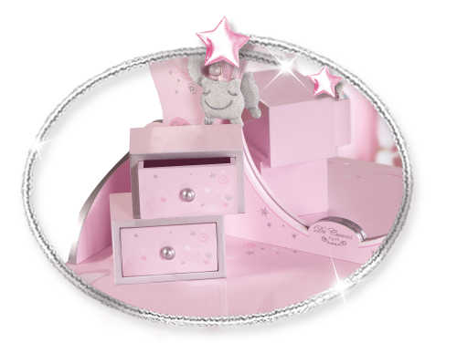 je z překrásné růžovostříbrné pohádkové kolekce s vílou a žabičkou. Tuto kolekci zdobí jemné třpytivé krajkové lemování s flitry v šedostříbrné barvě. Čelo, deska a nohy stolku jsou zdobeny krásnými potisky, a vše ještě doplňují úchytky na šuplíčkách ve stříbrné barvě a malá zavěšená stříbrná žabička s měsíčkem. Bez taburetky s jemně třpytivým krajkovým lemováním s flitry by tento set nebyl tak pohádkově kouzelný.