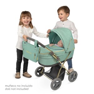 DeCuevas 85073 Skládací kočárek pro panenky se slunečníkem a taškou Capriccio 2025 - 60 cm patří do stejnojmenné kolekce, která je novinkou roku 2025 a nabízí luxusní kočárky jak pro malé slečny a jejich panenky, tak pro chlapce. Tato úžasná kolekce Capriccio není nová jen svou nezaměnitelnou moderní mentolově zelenou barvou, ale také svým zdobným zpracováním. Jedná se o imitaci úpletu rafinovaně kombinovaného s hladkou moderní látkou. Rám a podvozek kočárků tvoří tmavě šedá se zlatými prvky, které jsou vkusně uplatněny v podobě zlatých zipů a výšivky Capriccio na textilní části kočárků a doplňkové tašce.