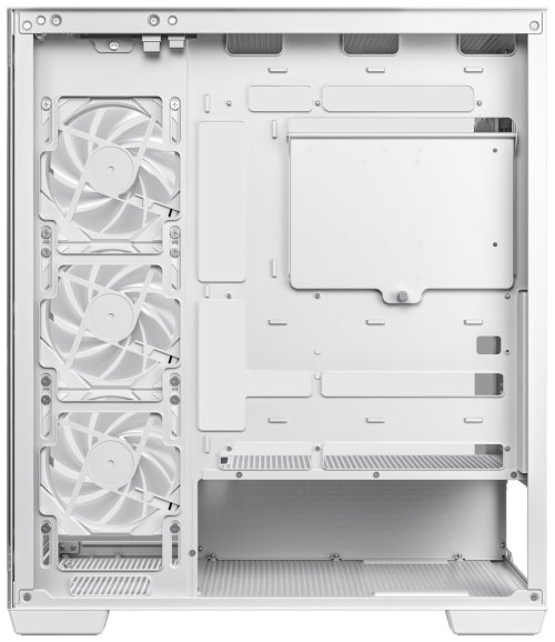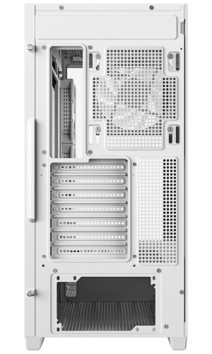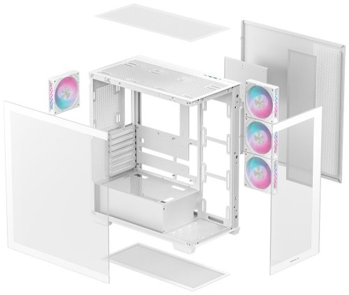 Jednokomorová skříň formátu Middle Tower se skleněnou bočnicí a předním panelem nabízející výhled v úhlu 270°. K dispozici jsou dvě 2,5" pozice pro SSD disky a dvě 3,5" pozice pro pevné disky. Na horním panelu se nachází dva USB 3.0 porty, USB-C port a kombinovaný port sluchátek a mikrofonu. Skříň je osazena čtyřmi 120mm PWM ventilátory s ARGB podsvícením. Důmyslné řešení umožňuje pohodlné umístění až 360 mm dlouhého výměníku vodního chlazení na horní nebo boční straně. Ve skříni je dostatek prostoru pro chladič CPU do výšky až 176 mm a grafickou kartu o délce 410 mm (v případě instalace 360mm výměníku vodního chlazení na boční straně max. 262 mm). Skříň je dodávána bez zdroje. Součástí balení je také sada magnetických prachových filtrů.