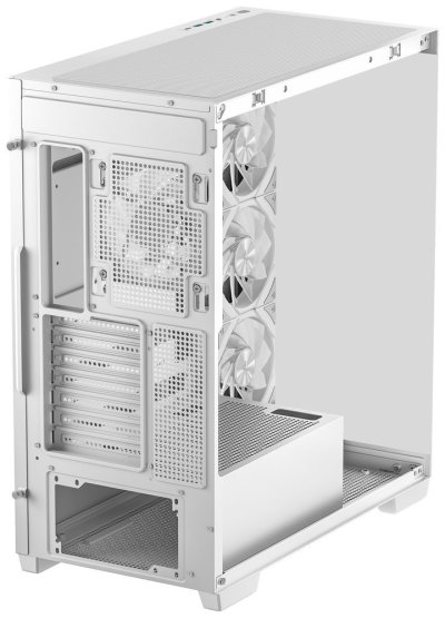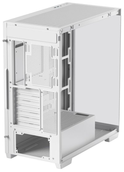 PC skříň DEEPCOOL CG580 4F v jednokomorovém provedení, které nejenom pojme výkonné komponenty, ale také je dá patřičně na odiv. Díky prosklené bočnici a přednímu panelu poskytuje panoramatický a nepřerušovaný pohled na vnitřní uspořádání, a tím i stylový vzhled celé skříně. Konstrukce nabízí praktickou přihrádku na základní desku, což přispívá k čistému a přehlednému uspořádání.