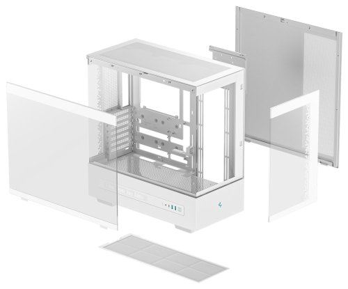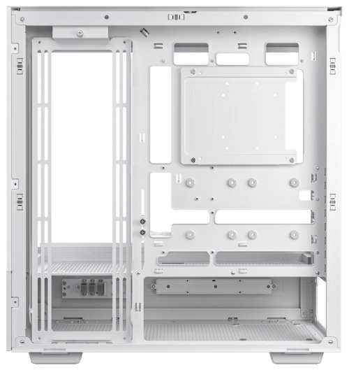 Stylová a prostorná skříň formátu Middle Tower s průhlednou bočnicí i předním panelem nabízí jednu 2,5/3,5" pozici pro HDD/SDD disk a dvě 2,5" pozice pro SSD disky. Díky možnosti osazení až deseti ventilátory skříň poskytuje více než dostatečné možnosti chlazení. Na boční straně se nachází dva USB 3.0 porty, jeden port USB-C a kombinovaný audio port pro sluchátka a mikrofon. Důmyslné řešení umožňuje pohodlné umístění až 420 mm dlouhého výměníku vodního chlazení na horní straně. Ve skříni je dostatek prostoru pro chladič CPU do výšky až 182 mm a grafickou kartu o délce až 450 mm. Základna skříně obsahuje digitální displej, který zobrazuje aktuální teplotu, výkon, spotřebu a otáčky ventilátorů. Displej se může v daném okamžiku zaměřit na tyto hodnoty u procesoru, grafické karty nebo napájecího zdroje. Mesh panely zajistí vysoký průtok vzduchu. Potěší také vestavěná podpěra pro grafickou kartu. Skříň je dodávána bez zdroje a součástí balení je sada odnímatelných prachových filtrů.