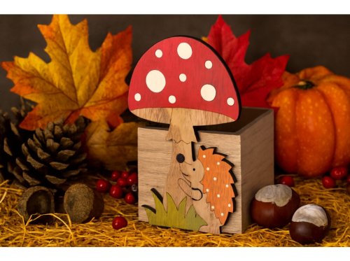 Dekorace dřevo 100x80x160mm Muchomůrka, přírodní, červená