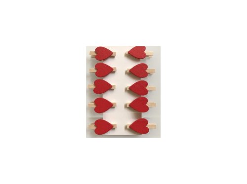 Dekorace dřevo 10ks 20mm srdíčko s kolíčkem, červená