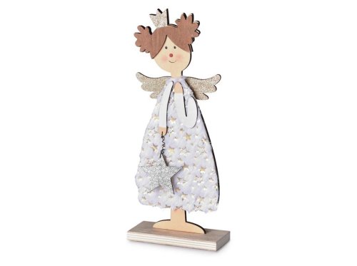 Dřevěný anděl o rozměrech 120×300 mm je krásnou dekorací na postavení, která vnese do interiéru jemnost a slavnostní atmosféru. Přírodní provedení doplněné třpytivým glitrem dodává andělovi elegantní vzhled, zatímco barevné detaily v mixu variant umožňují snadné sladění s ostatní výzdobou. Ideální pro vánoční období, adventní aranžmá nebo jako celoroční dekorace s duchovním nádechem. Skvěle se hodí na poličku, komodu či parapet a může posloužit také jako milý dárek. Zboží je dodáváno v mixu. Doručované zboží je vybíráno náhodně a nelze vybrat konkrétní provedení.