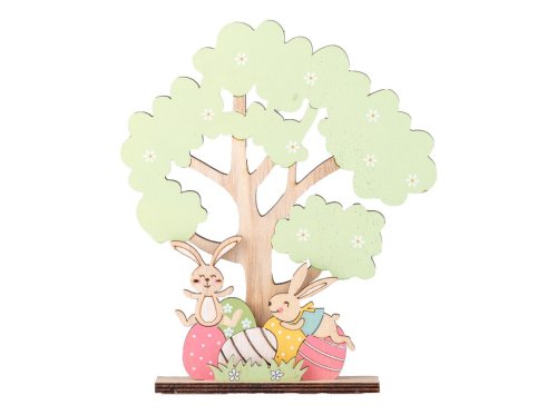 Dekorace dřevo 190x225mm strom se zajíčky a vajíčky, přírodní, barevná