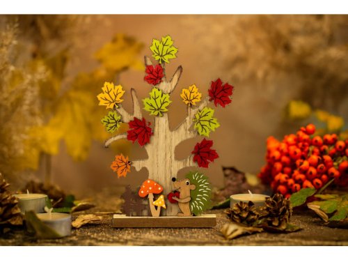 Dekorace dřevo 190x245mm strom, přírodní+barevná