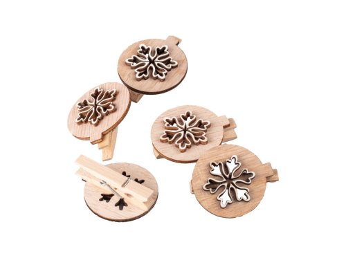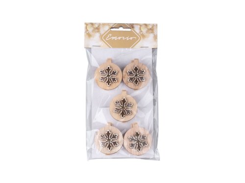 Dekorace dřevo 5 ks 45 mm vločka kolíček, přírodní