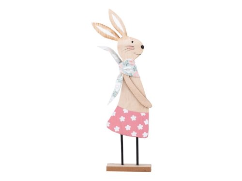 Dekorace dřevo 80x40x295mm zajíc na postavení, přírodní, růžová