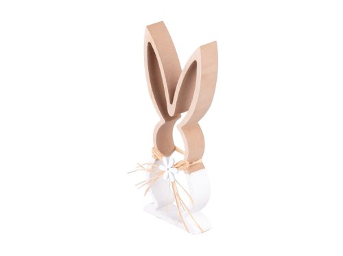 Dekorace dřevo 85x225mm zajíc na postavení, přírodní, bílá