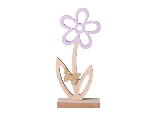 Dekorace dřevo 95x215mm kytka s motýlem, přírodní, růžová s glitrem
