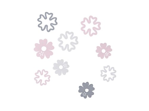Dřevěná dekorace ve tvaru kytičky, dostupná v několika barvách. Její rozměry jsou 35 x 35 mm a 27 x 27 mm.