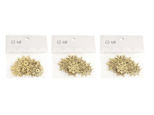 Dekorace dřevo set 12ks 38x36/37x40mm vločky mix, zlatá