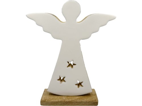 Dekorace dřevo, smalt 203x55x279mm anděl na postavení, přírodní, bílá