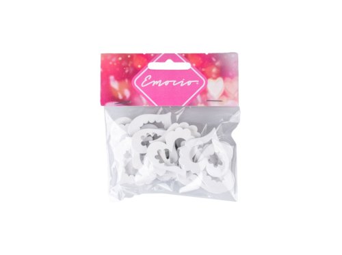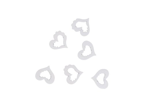 Dřevěná dekorace ve tvaru srdíčka v bílé barvě, ideální pro dárky nebo jako dekorace. Její rozměry jsou 40 x 40 mm.